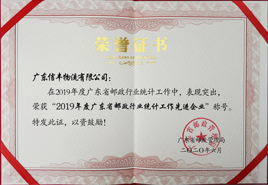 被授予“2019年度广东省邮政行业统计工作先进企业” |