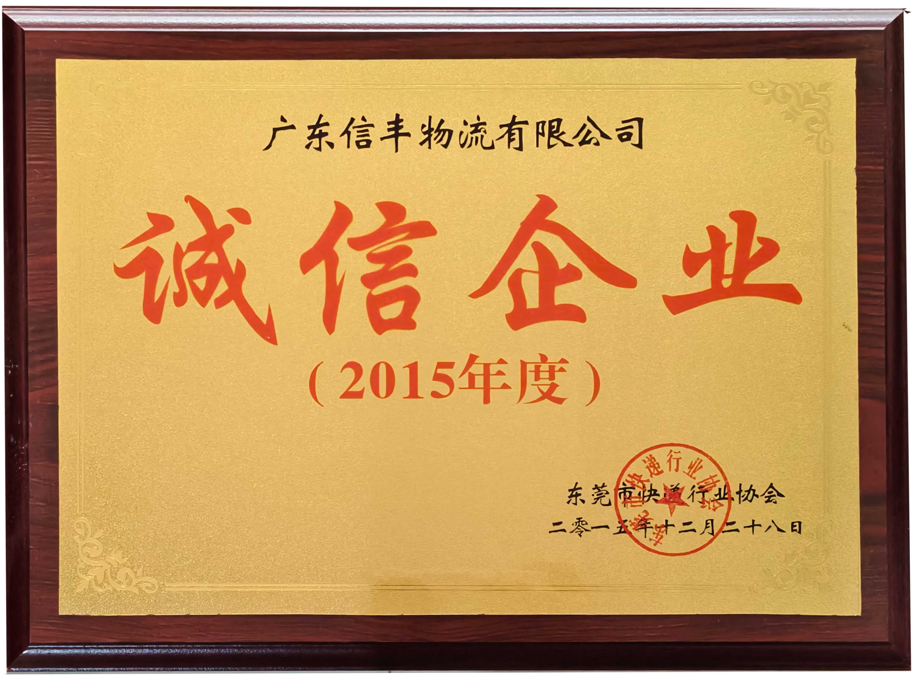 被授予“2015年度东莞市快递行业诚信企业” |