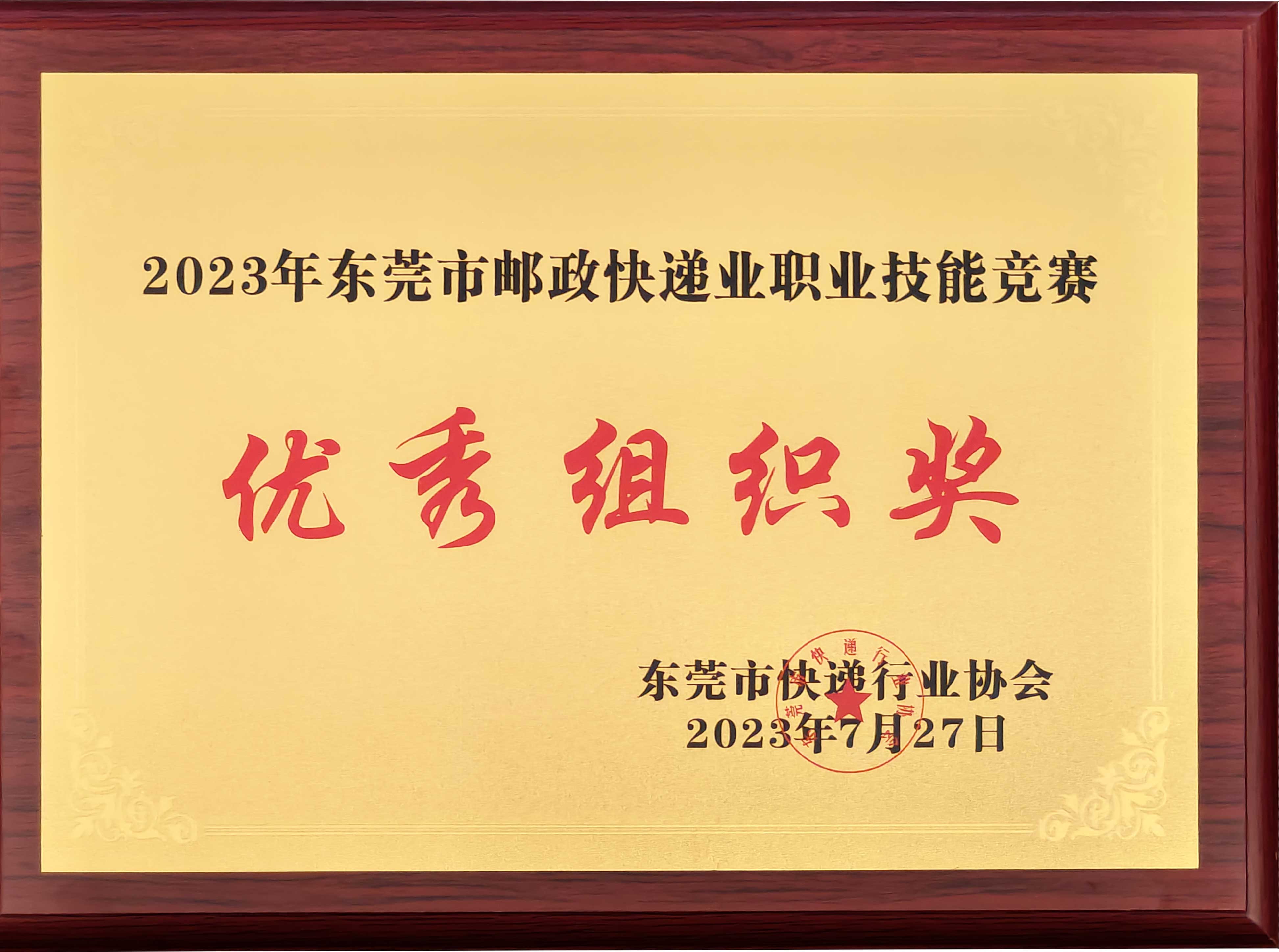 被授予“2023年东莞市邮政快递业职业技能竞赛优秀组织奖” |