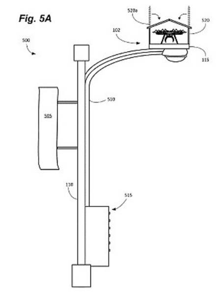 亚马逊还设计了一款跟路灯结合在一起的无人机投递台。