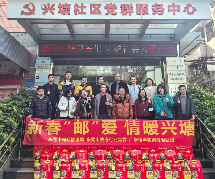 在新春佳节即将来临之际,信丰积极履行社会责任,经由上级主管部门统筹组织,信丰物流董事长徐俊斌代表公司带队一起走进东莞市莞城兴塘社区开展“新春‘邮’爱,情暖兴塘”迎新慰问活动,以实际行动为构建和谐社区贡献一份力量。