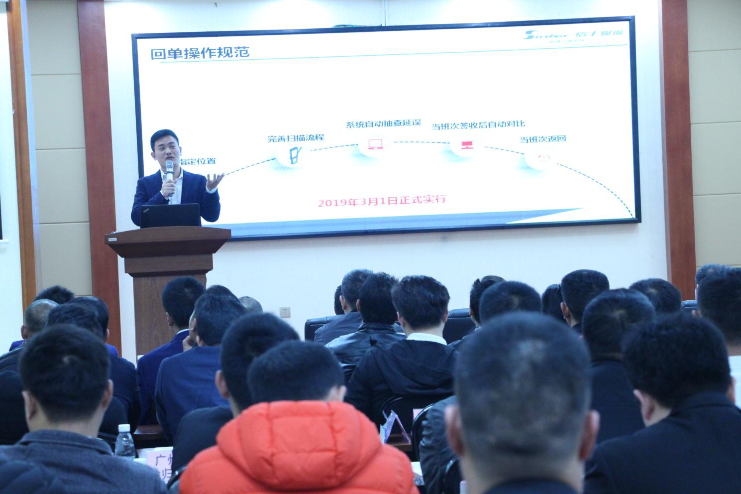 营运部总经理兼浙江区总经理吕国彬先生主持会议,并做了2019年安全生产的具体工作部署。他要求各分公司各部门强化安全生产意识,贯彻落实好各级主管部门及总部的各项安全生产方针政策,切实做好寄递渠道“三个100%”工作,并从国家法律法规、 三个100%”、实名认证操作流程等方面对在场人员进行了现场培训。