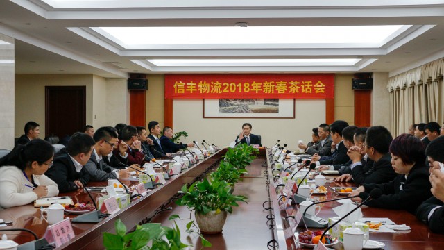 为了明确2018年的发展规划,进一步完善工作思路,做好岁末年初各项工作部署,公司总部于2017年最后一天12月31日在信丰大厦11楼召开了“信丰物流2018年新春茶话会”。三十家优秀分公司代表与网管中心各部门负责人共计50余人汇聚一堂,共同畅谈公司发展。董事长兼总裁徐俊斌、副董事长张泽林、副董事袁锡沛、直营事业部总经理彭修奎、拓展部总经理沈孟均、营运部总经理吕国彬等出席了本次会议。