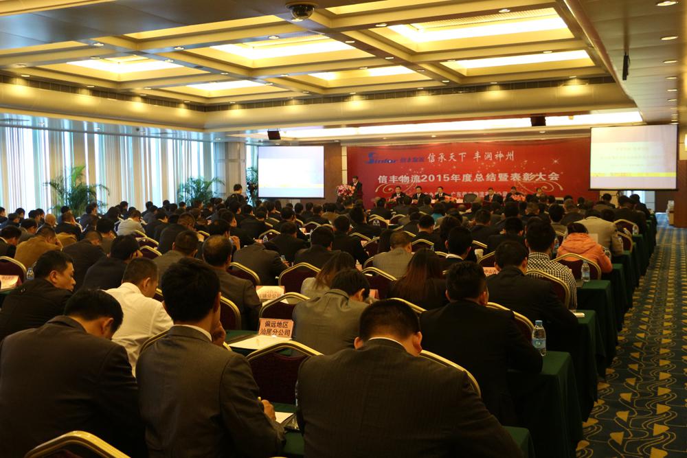 2016年1月16日下午 2 :30 分, 广东信丰物流有限公司2015年度总结暨表彰大会在虎门龙泉国际大酒店四楼多功能会议厅隆重召开。公司董事长兼总裁徐俊斌、副董事长张泽林、董事袁锡沛、拓展部总经理沈茂军、直营事业部总经理彭修奎、营运部总经理吕国彬、分拨中心副总经理杨子全、福建信丰等外省公司负责人以及总部各部门负责人,各分公司负责人共 400 余人集聚一堂,共同盘点2015年所取得的成绩、总结不足、表彰先进,部署2016年度工作规划。