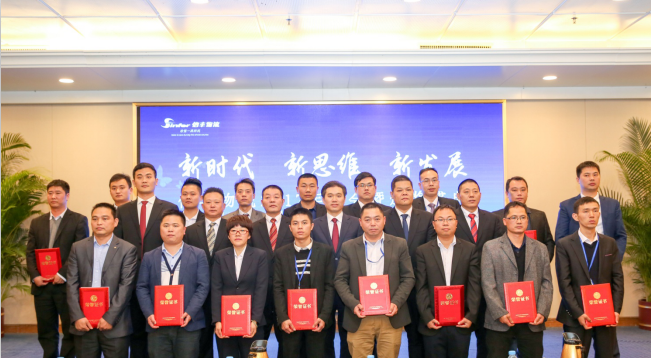 副董事长张泽林、拓展部总经理沈孟均、直营事业部总经理彭修奎、营运部总经理吕国彬等四位领导分别就2017年的工作总结及2018年的工作规划作报告。随后举行了年度优秀颁奖盛典,对2017年度在公司各方面取得优秀成绩的13家分公司进行了表彰,颁发了证书与奖金。4名业绩突出分公司作为代表结合自身工作实例现场发言,让人倍受鼓舞和激励。
