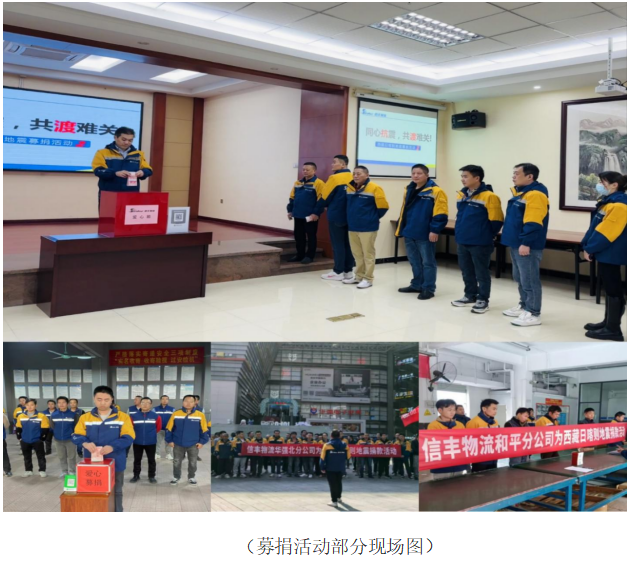 募捐活动现场,气氛庄重而热烈。信丰物流董事长徐俊斌率先垂范,带领总部各职能部门第一负责人带头捐款,总部广大职能部门员工及全网络各分公司人员纷纷踊跃参与各部门各分公司组织的现场募捐活动。无论一线的快递业务员、仓库分拨工人,还是分公司的行政人员、管理人员,大家都慷慨解囊,一起支持灾区人民抗震救灾,为受灾同胞尽一份绵薄之力。除了现场捐款,许多无法到达现场的员工也通过线上转账等方式积极参与,线上募捐爱心款收款账号不断跳动的数字,见证着信丰人一颗颗炽热的爱心。