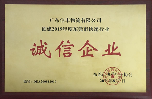 “人无信不立,业无信不兴”,广东信丰物流有限公司自成立以来,一直认真贯彻执行国家邮政局、广东省邮政管理局及地方邮政管理局工作要求,坚持“诚信和谐、安全快捷、求实创新、持续发展”的经营理念,高度重视企业诚信品牌建设,积极推进企业诚信体系建设助力企业的健康长远发展,经过多年的积淀和凝炼,在行业内树立了良好的口碑,受到各级主管部门及广大客户的认可与支持。